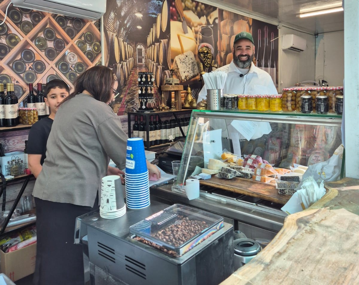עגלת קפה המספקת חווייה קולינרית הכוללת מגוון משקאות, מאפים, גבינות, יין איכותי, ירקות טריים, בכשרות מהודרת