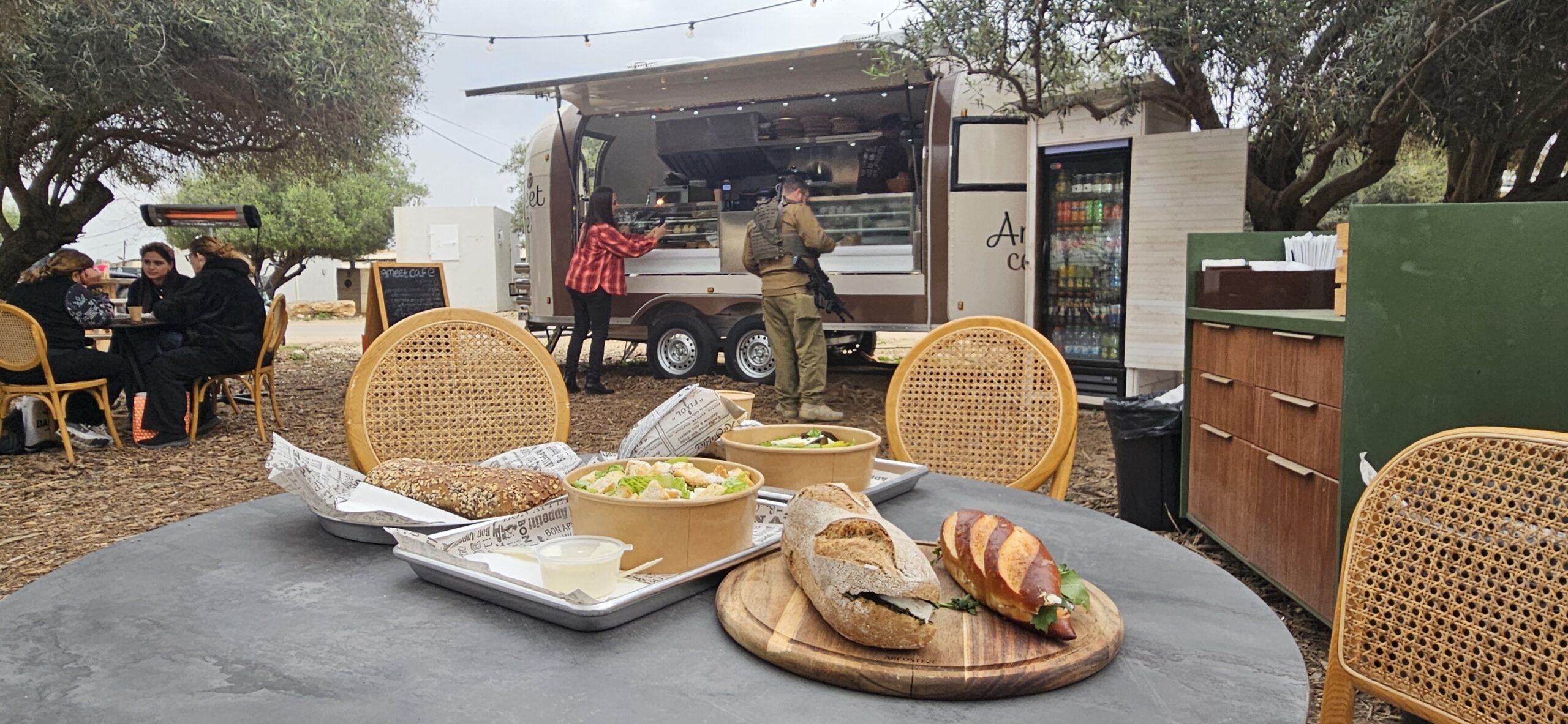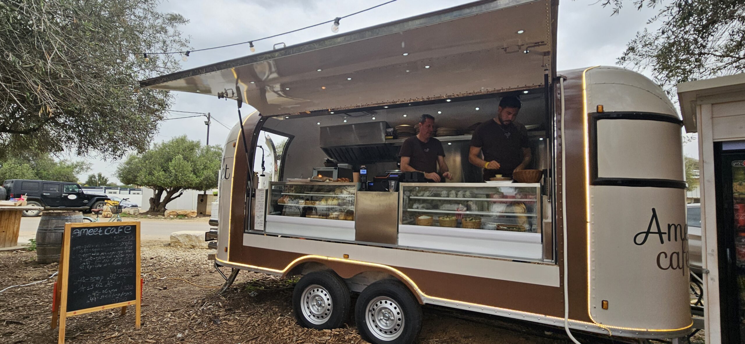 עגלת קפה בלב הנוף של קיבוץ רעים