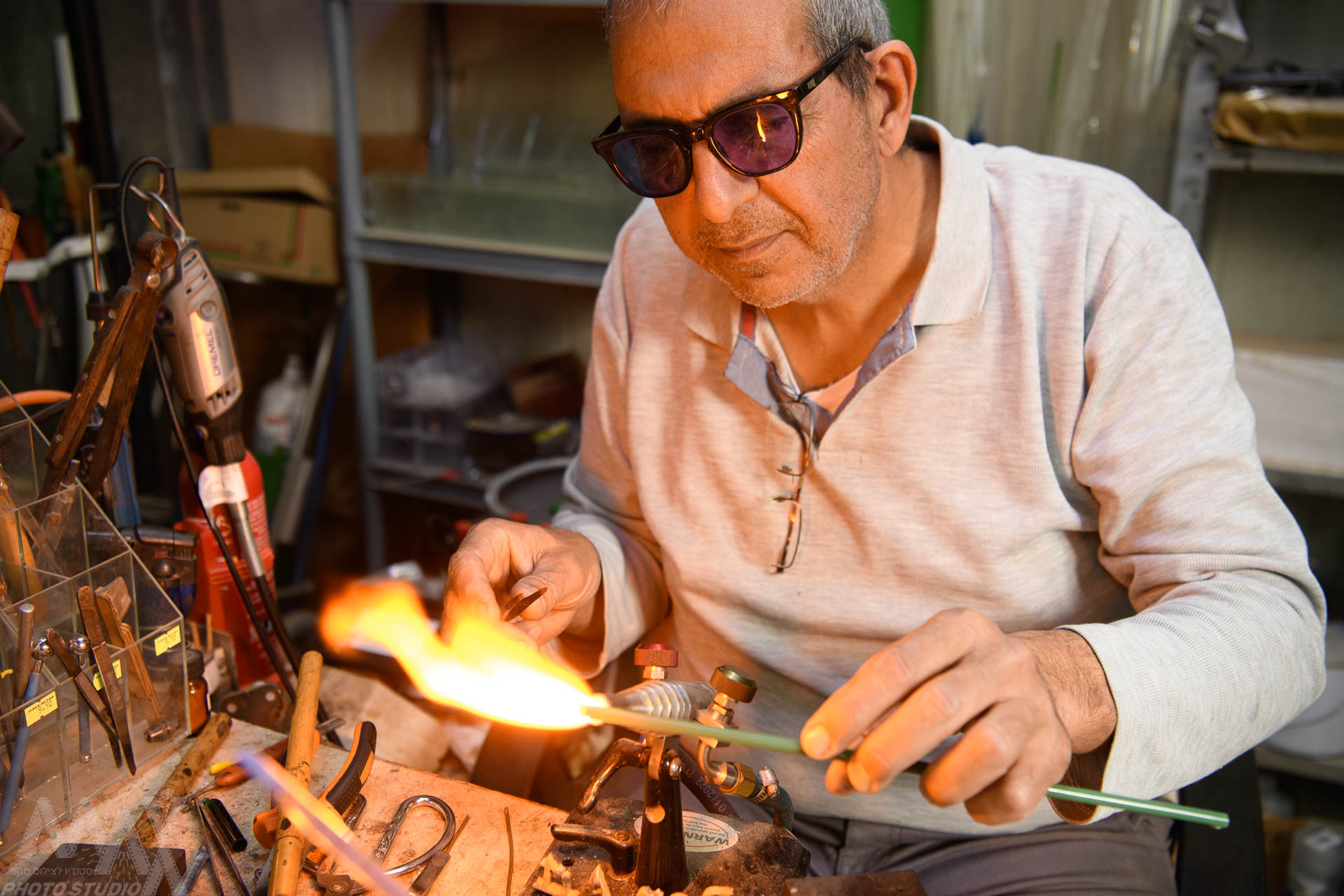 במהלך הביקור האומן ידגים תהליך ניפוח זכוכית.