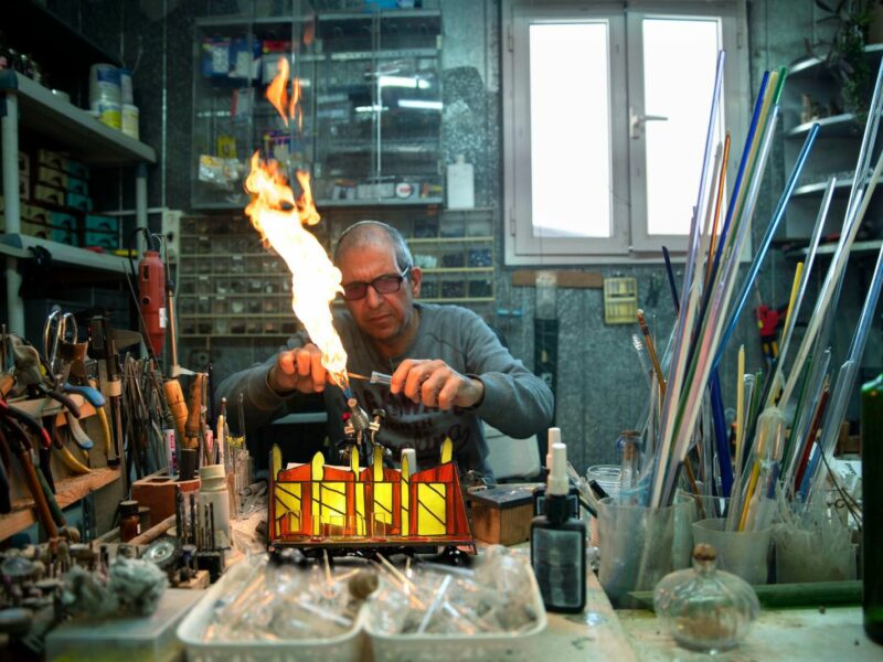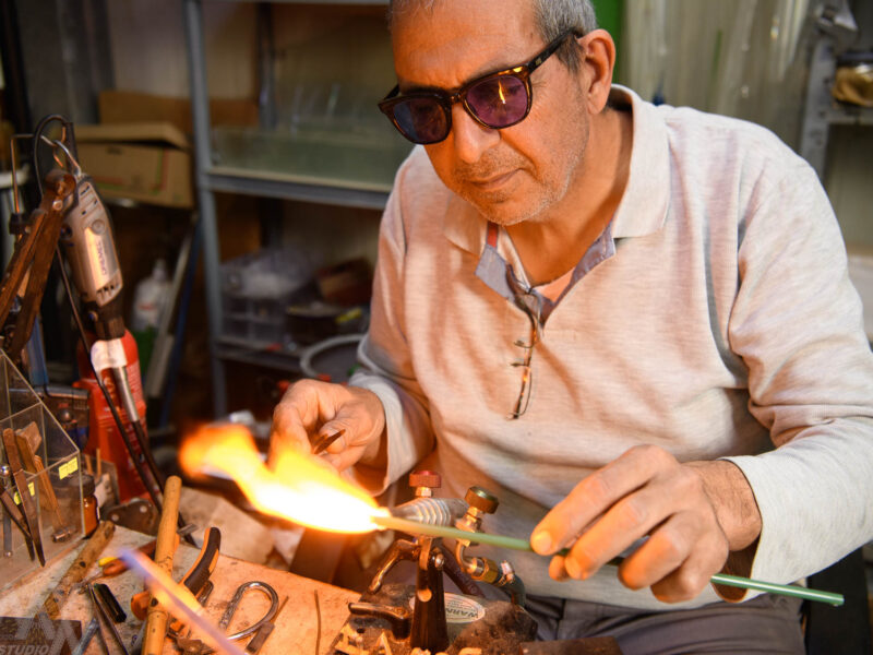 מפגשי אמן לקבוצות – הנחית סיורים וסדנאות חוויה לקבוצות, לארגונים ולאירועי חברה. הזדמנות נדירה לצפות ולהתנסות בעבודת ניפוח הזכוכית.